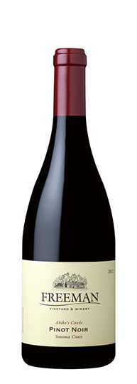 毎年ブラインドで行われるスタッフ試飲でアキコさんのブレンドが毎回1位になることが由来。毎年ブラインドで行われるスタッフ試飲でアキコさんのブレンドが毎回1位になることが由来。フリーマン・ヴィンヤード&ワイナリーはケン・フリーマンと六本木出身で奥様のアキコによって2001年に設立されました。その15年前、まだ二人が出会って間もない頃、共にエレガントで洗練されたシャルドネとピノ・ノワール好きとして意気投合し、いつかはカリフォルニアでブルゴーニュのような複雑味と、飲み手を惹き込む力を持ったワインを自分達の手で造ることを夢見ていました。世界に匹敵するワイナリー設立を実現するために、冷涼でなだらかな斜面に植えられているブドウ畑を中心に、300を超える畑や栽培農家の視察を始めます。その結果、選んだのは霧に覆われ海岸から内陸に吹き込む冷たい海風に影響されるソノマ・ヴァレーの生産地でした。そこで育つブドウはゆっくりと成熟し、フレッシュな酸が保たれ、とてもピュアでフレーヴァー豊かに育ちます。フリーマンが設立された2000年代は、カリフォルニアでは果実味たっぷりのワインが生産され消費されていたブームの真っ只中ですが、彼らはそんなトレンドに影響されることなく、有機農業を基本としながら、バランスが取れた上品なワインを醸造するという自分達の信念を貫いています。結果、フリーマンのワイン・スタイルはカリフォルニアはもとより、世界からも注目を浴びるようになり、各国の著名なレストランのワインリストに採用されて、小さいながらも著名なブランドに成長しました。2015年4月、安倍晋三首相を招いて行われたバラク・オバマ元大統領のホワイトハウス公式晩餐会に、2013年ヴィンテージの涼風シャルドネが供され、一躍脚光を浴びました。2019年現在、アキコさんはカリフォルニアでワイナリーと畑を所有する唯一の日本人オーナー女性醸造家として、つつましく切れ味のある高品質ワインを造り続けています。
